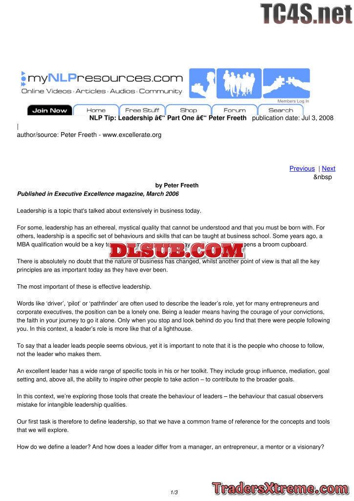 Leadership Part One Peter Freeth - JPG Image File