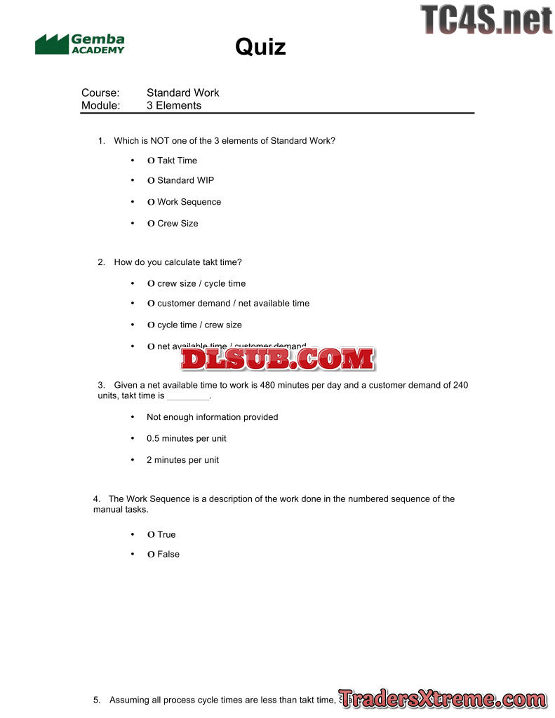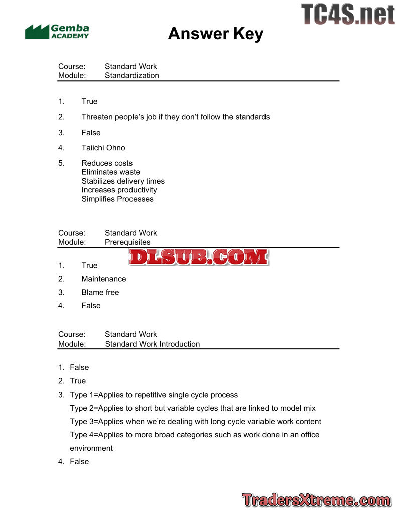 Quiz Answers Standard Work - JPG Image File