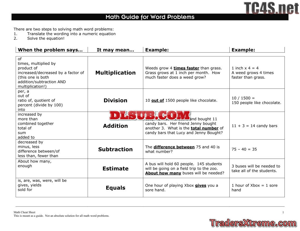 Cheatsheet Wordproblems And Formula - JPG Image File