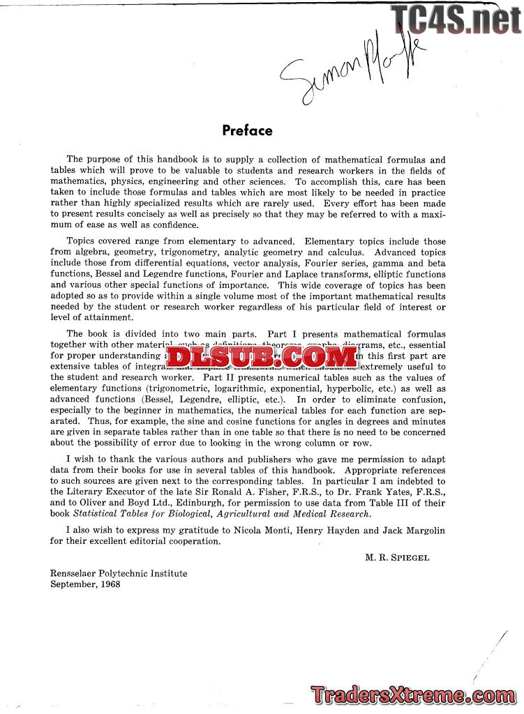 Mathematical Handbook Of Formulas And Tables - JPG Image File