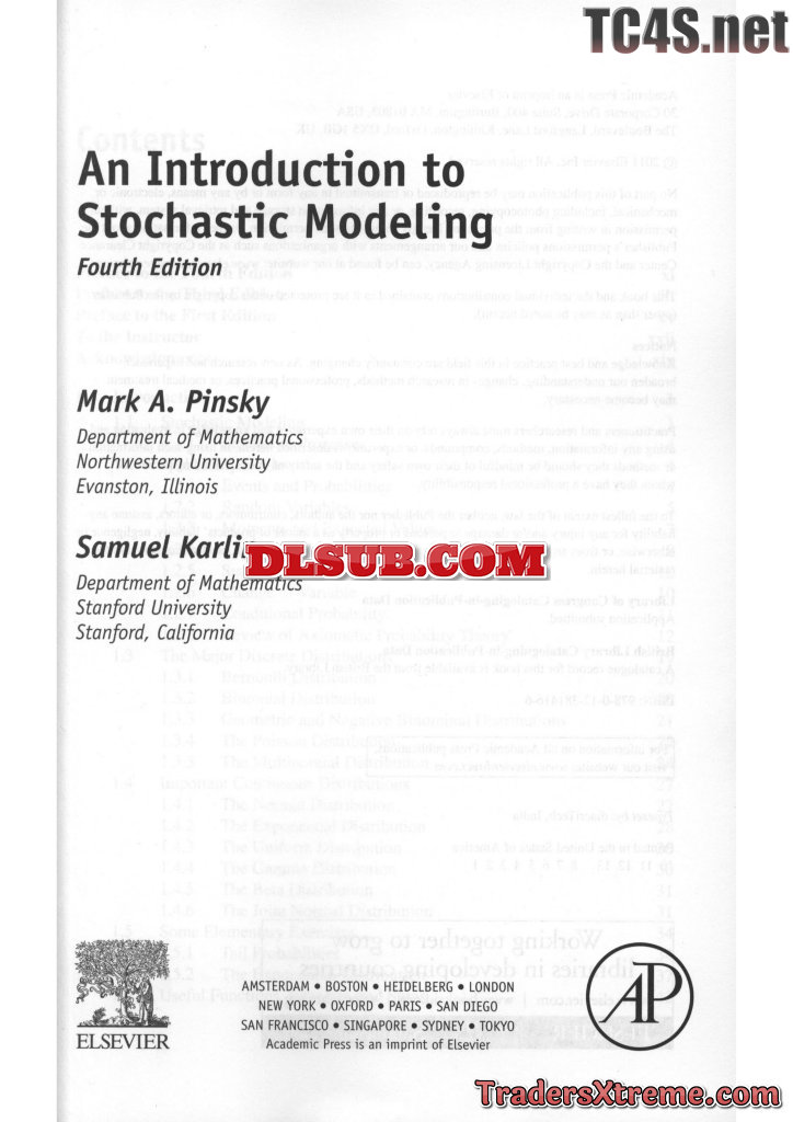 Mark Pinsky And Samuel Karlin An Introduction To Stochastic Modeling 4th Edition