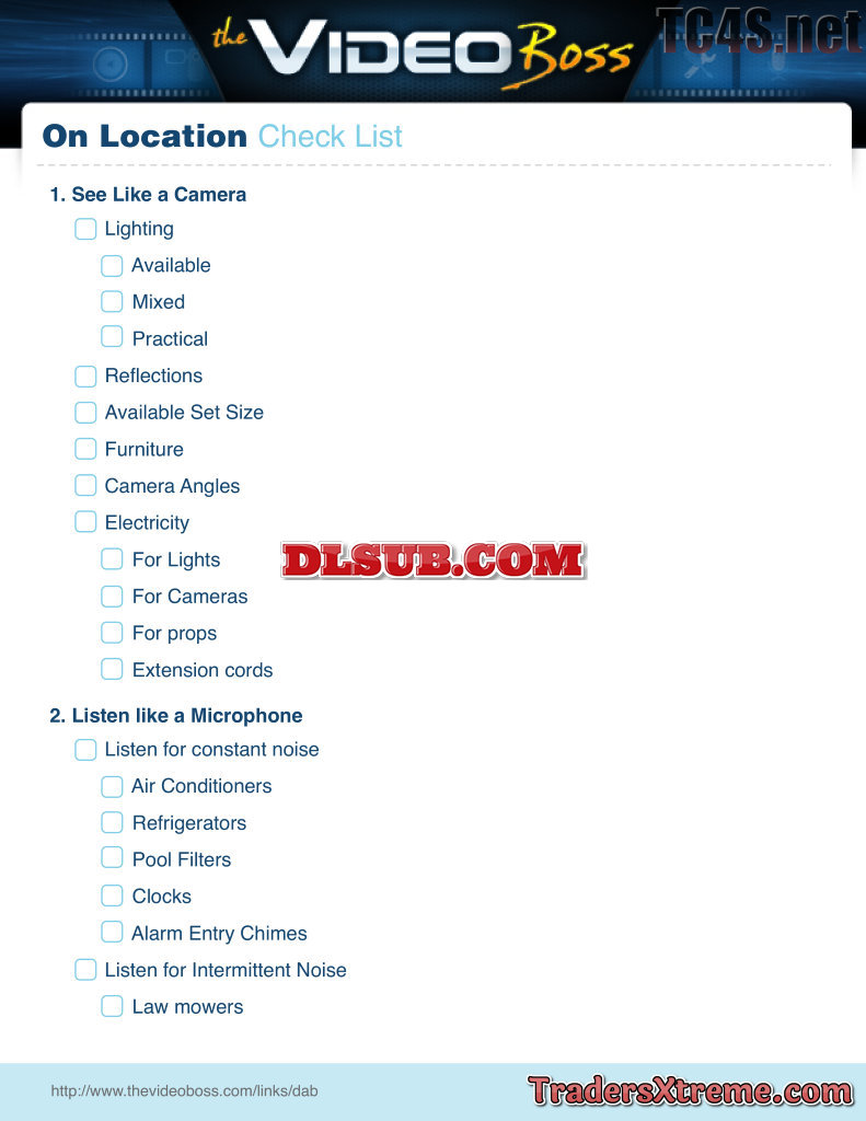 Checklist Live Video Shoot On Location - JPG Image File