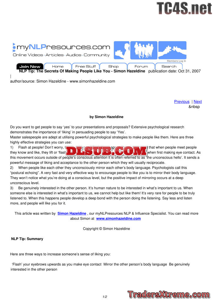 The Secrets Of Making People Like You Simon Hazeldine - JPG Image File