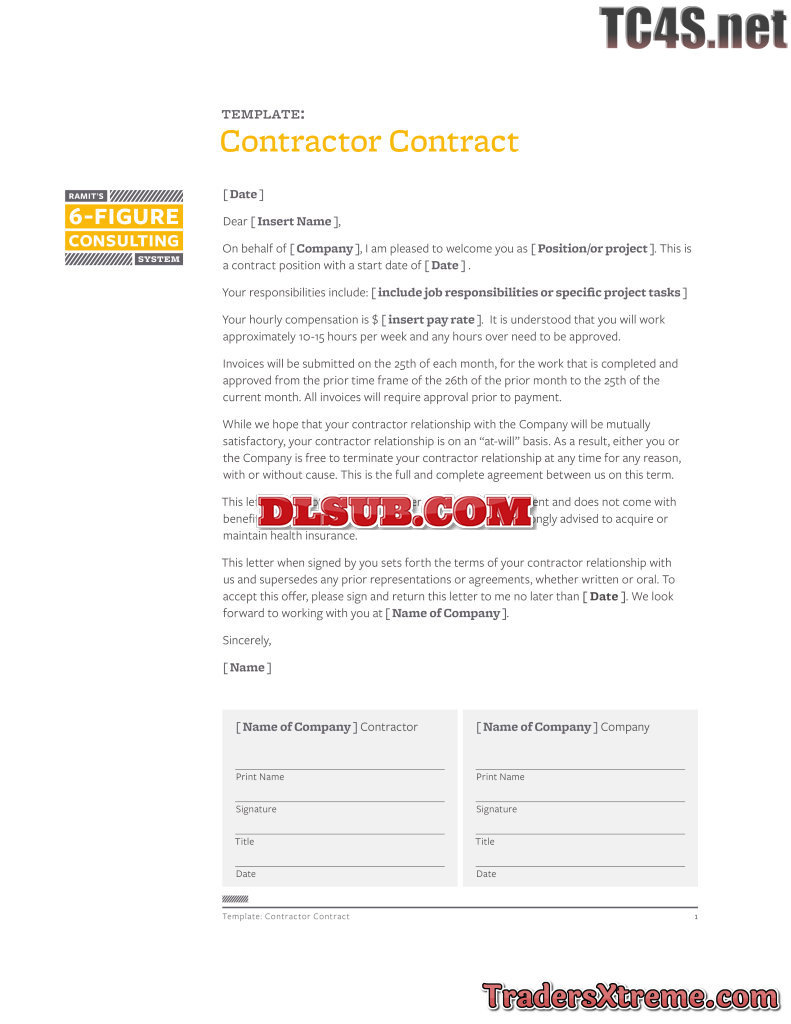 Template Contractor Contract - JPG Image File