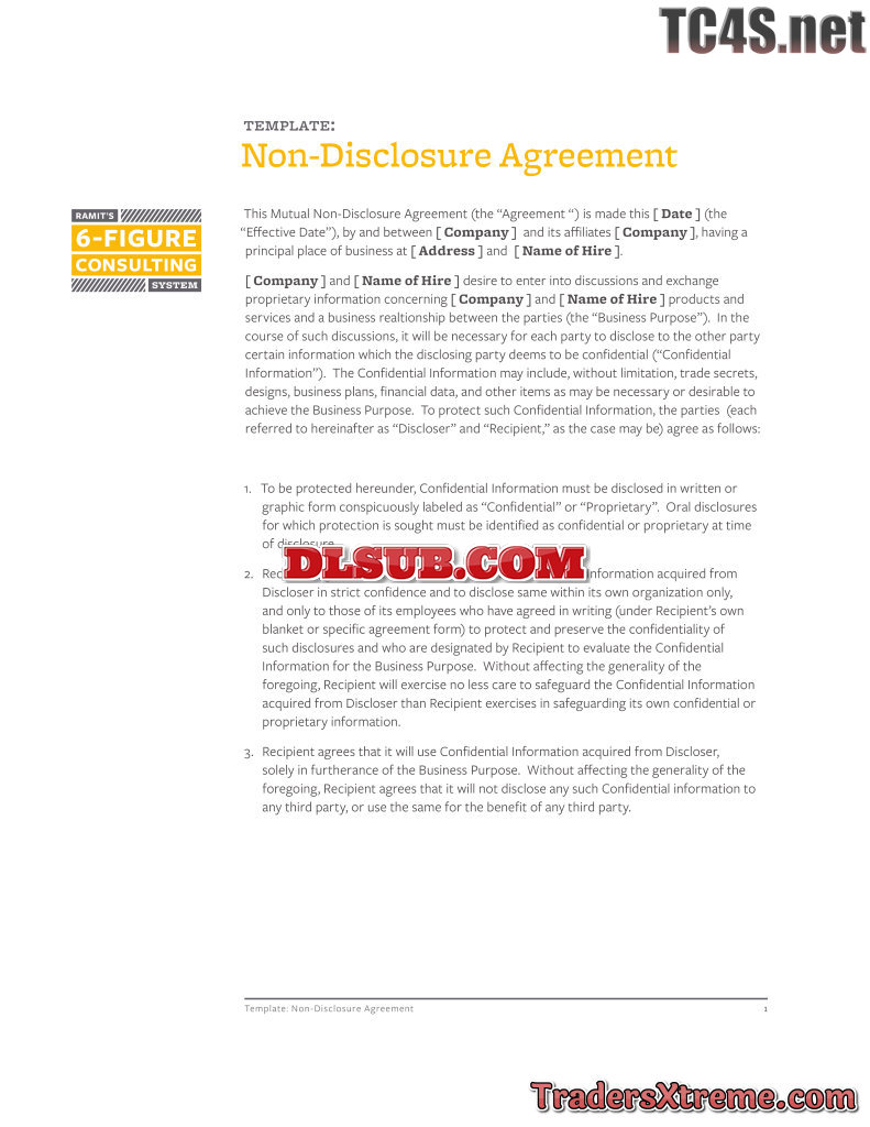 Template Non Disclosure Agreement - JPG Image File