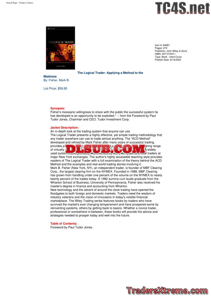 Mark Fisher The Logical Trader Applying A Method To The Madness - JPG Image File